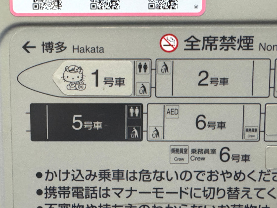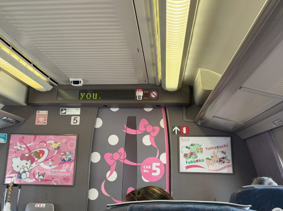 行きの新幹線。たまたまですが、広島からはキティさん新幹線でした。