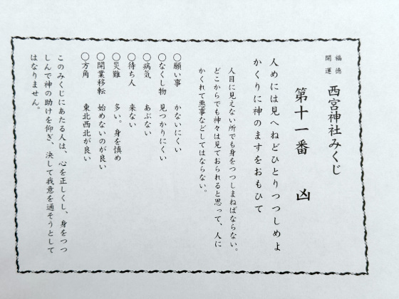 西宮神社での凶をキャンセルしてくださいとお願いしたあと