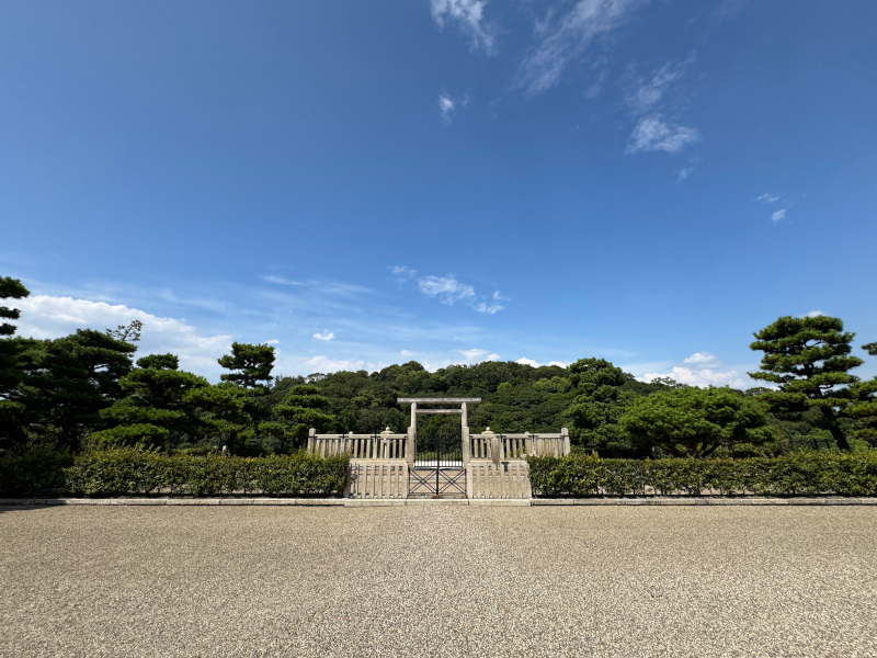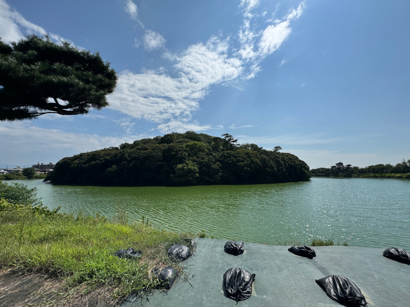 拝所は前方後円墳の「前方」のほうにあります。鍵穴の一番下のところですね。
