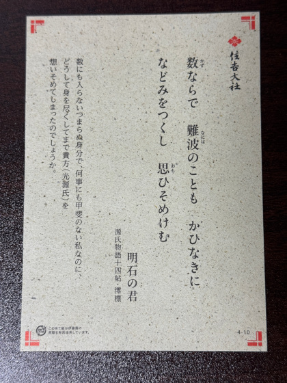 御朱印と一緒に入っていたのは源氏物語の明石の君の歌。