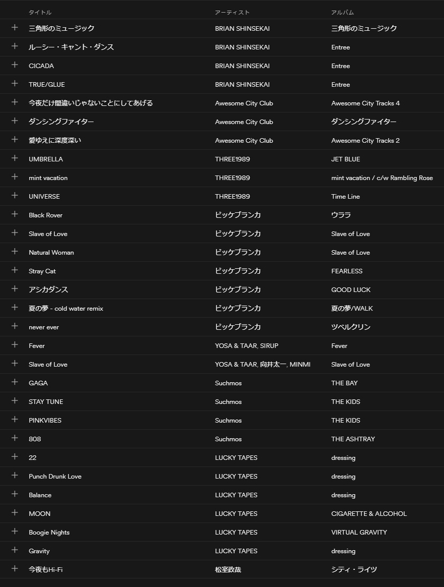 Spotify で邦楽のプレイリストに曲を追加したりしてました。