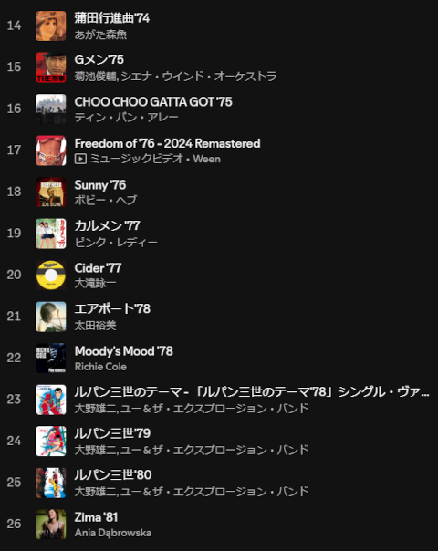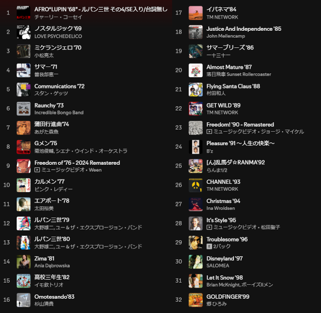 で、じつは1年1曲ではなく、複数の曲を選出した年もあるので、