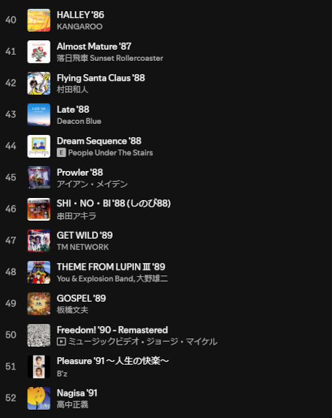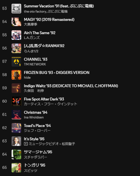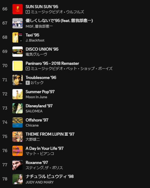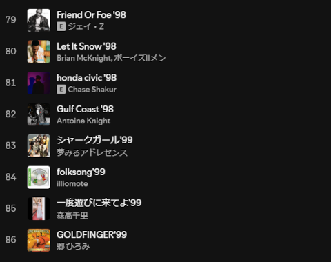 曲名の末尾にアポストロフィ+2桁の年が入ってるやつを 99 年まで。